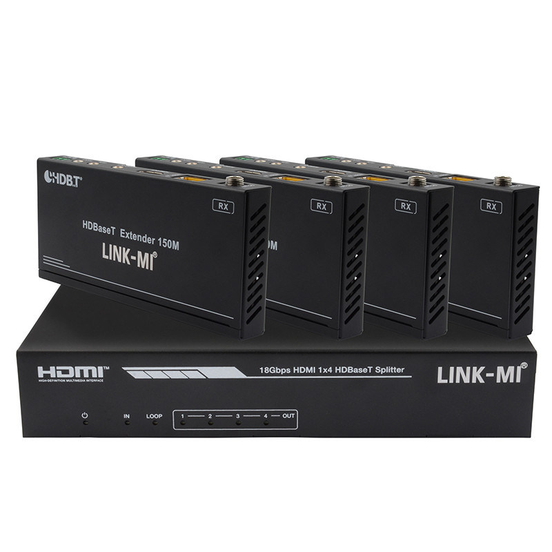 LINK-MI LM-SPH14-150 Ce séparateur HDMI 1x4 HDBaseT de 18 Gbps peut distribuer 1 signal source à n'importe quels 4 appareils d'affichage.La distance de transmission du signal HDMI peut être étendue jusqu'à 120 mètres à une résolution de 4K2K@60Hz, 150 mètres à 1080P@60Hz via un seul câble CAT6/6a/7. Le produit prend en charge jusqu'à 7.1CH HD audio pass-through.